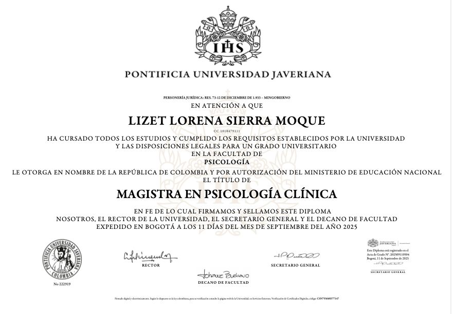 Soy psicóloga y Magíster en Psicología Clínica, y desde hace cinco años acompaño procesos con adultos, parejas y familias. Mi forma de trabajar parte de comprender tu historia y el contexto en el que se ha ido construyendo lo que hoy sientes, no se trata de buscar soluciones apresuradamente, sino de entender tu experiencia.